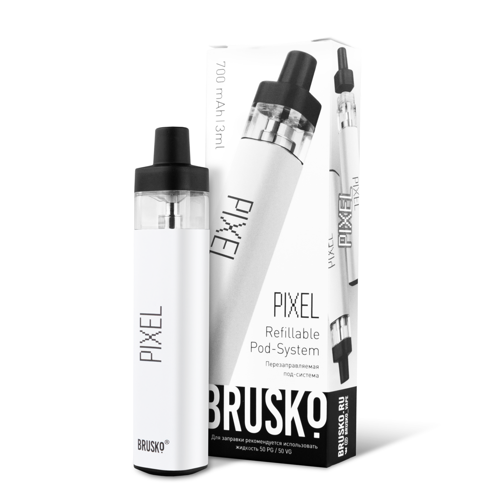 Перезаправляемая Под-Система Бруско Пиксель (Brusko Pixel) 700 mah, Белый - купить в Краснодаре