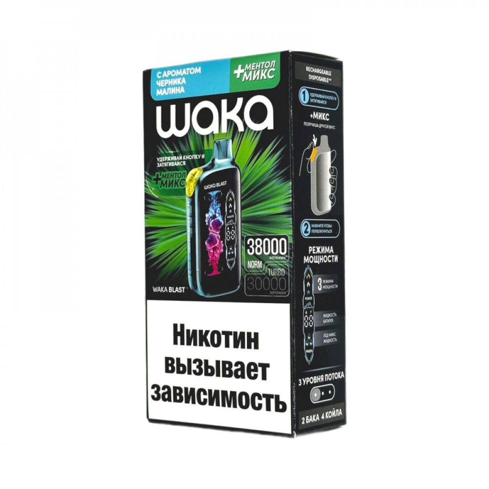 WAKA BLAST 38000 Hard - Черника малина + ментол микс - купить в Краснодаре