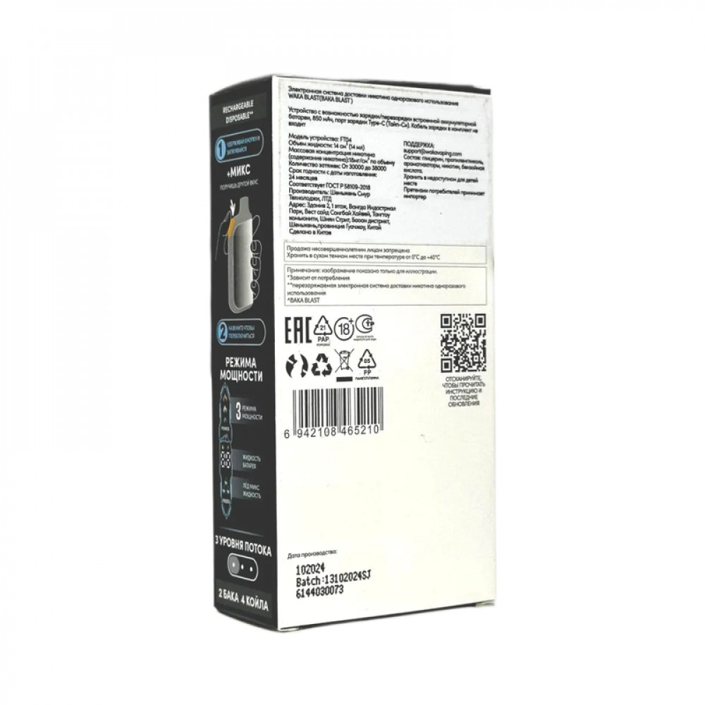 | Аромат/вкусЭнергетик + лимон микс | БрендWAKA | ДисплейДа |